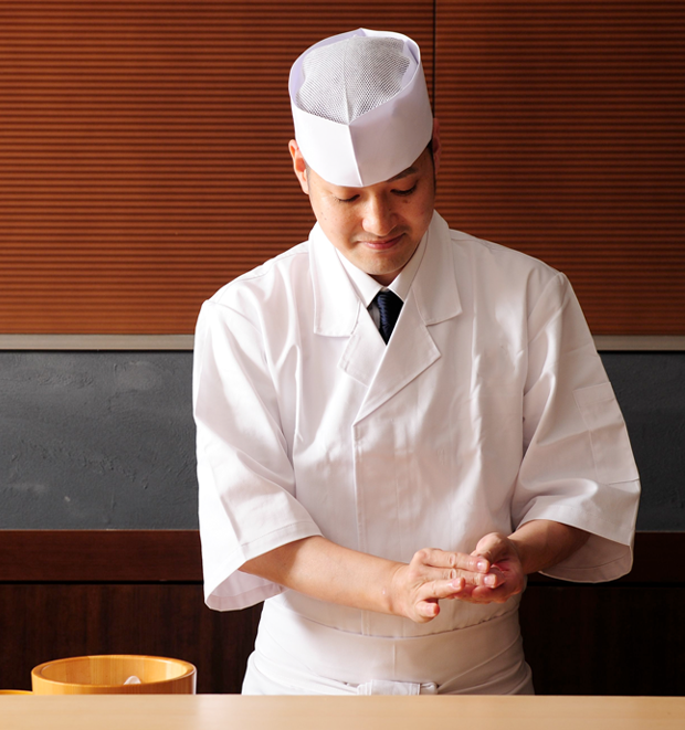 「GINZA SUSHI BANYA KAI」と同じ贅沢な食材を使った寿司おまかせコースを、熟練職人がその場でにぎってご提供します。