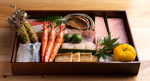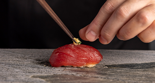 板前のおまかせに身を委ね、伝統的な江戸前寿司を。 その日仕入れた旬の素材を板前の手仕事で一品ずつお出しします。 江戸前の技巧と旬の味覚をご堪能ください。